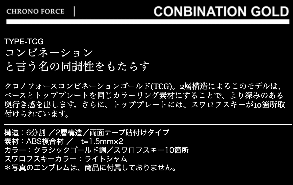 クロノフォースコンビネーションゴールド(TCG)。2層構造によるこのモデルは、ベースとトッププレートを同じカラーリング素材にすることで、より深みのある奥行き感を出します。さらに、トッププレートには、スワロフスキーが10箇所取付けられています。